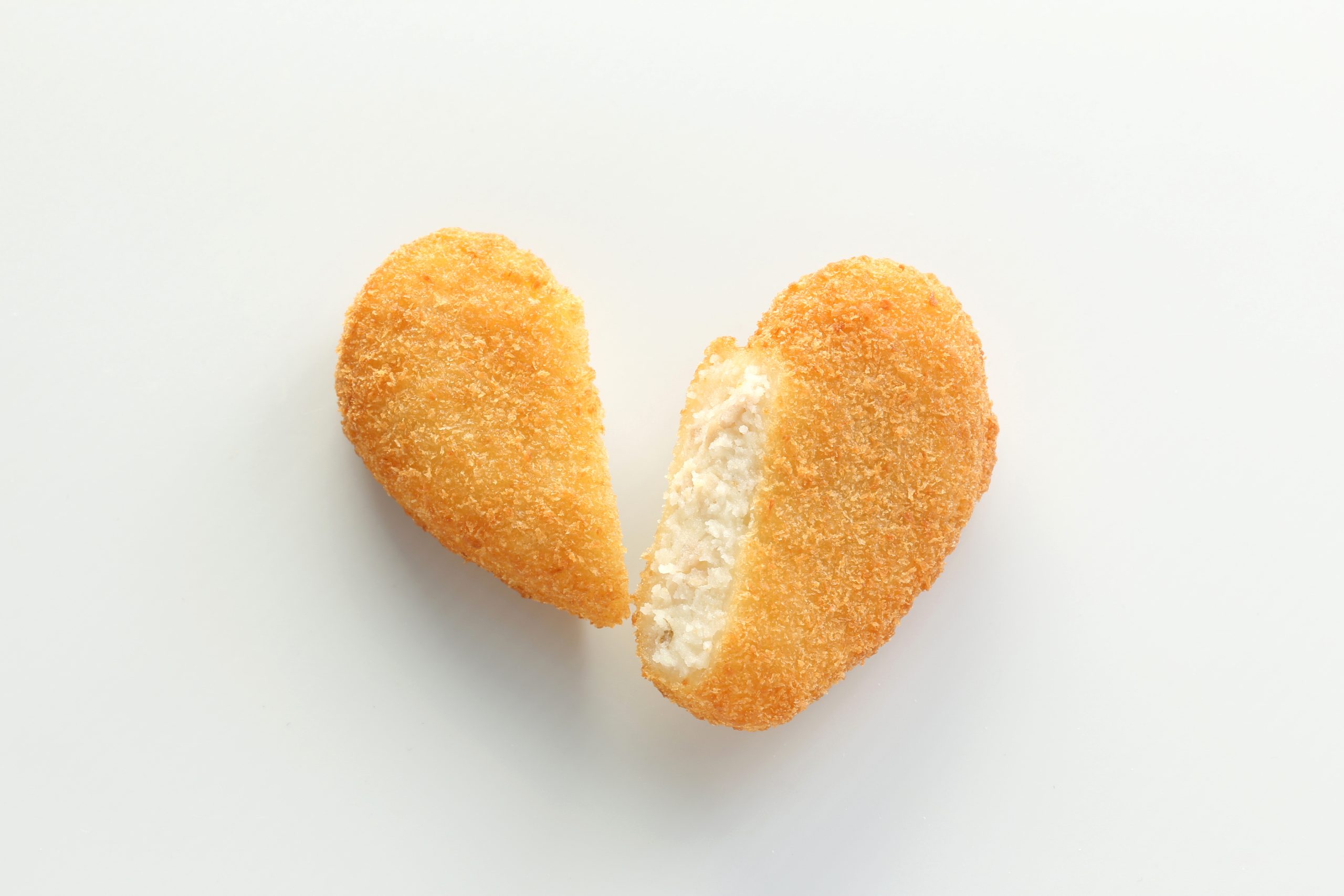 じゃがいもに鶏肉と豚肉を加えた見た目のかわいいハート型のコロッケです。