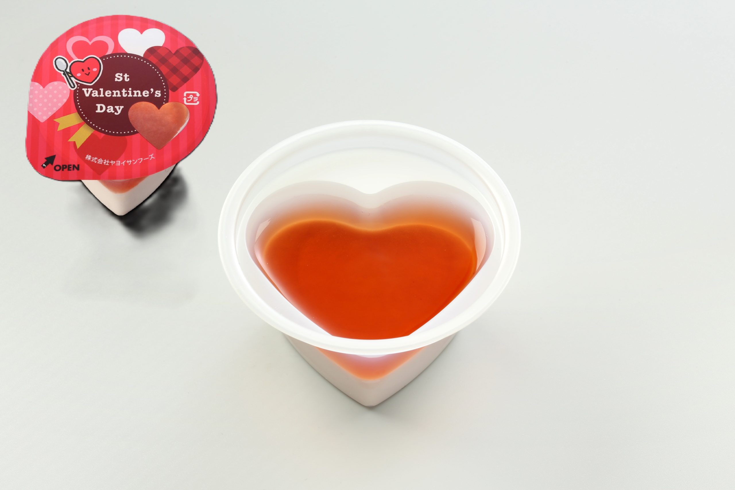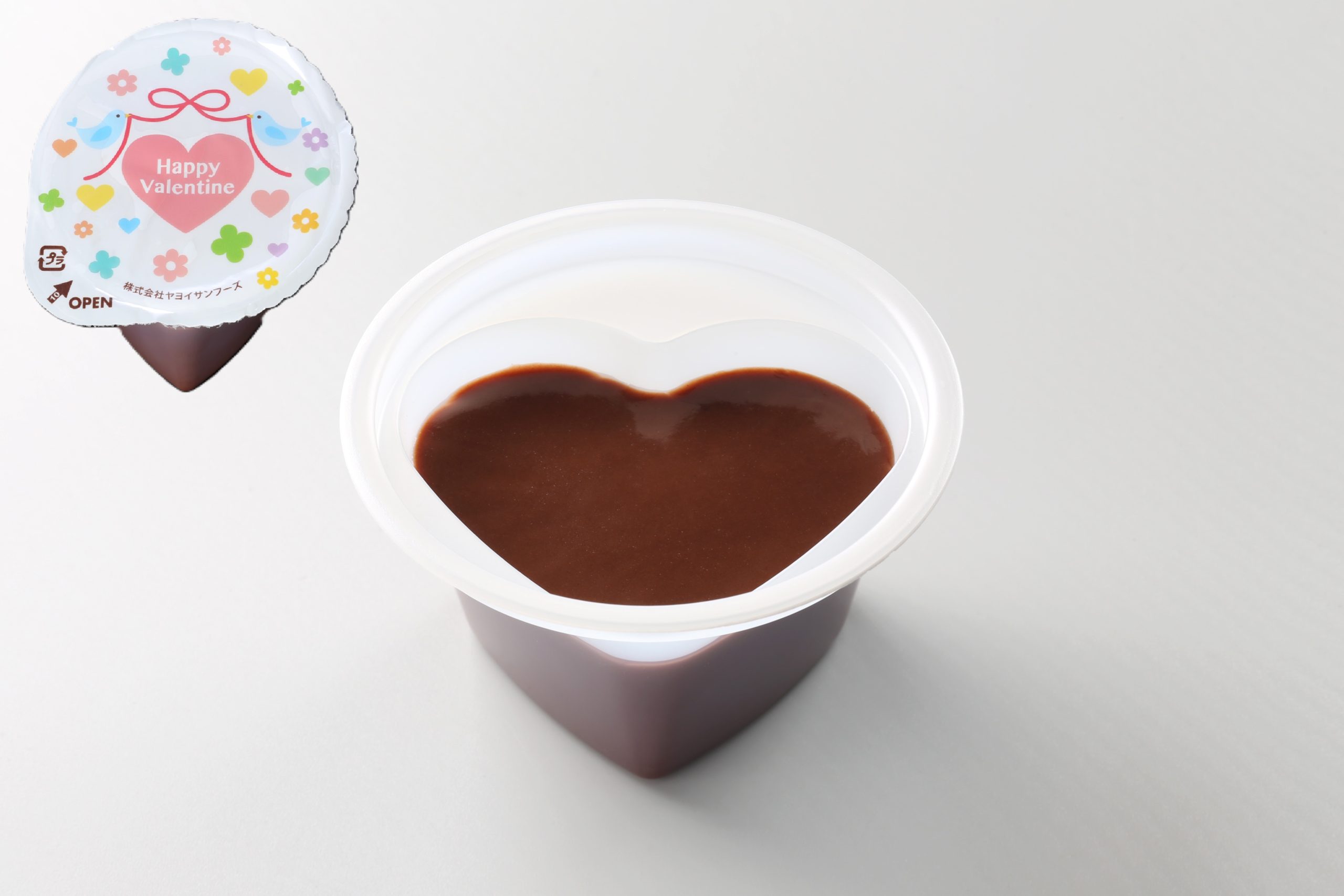 バレンタインにぴったりなハート型の容器に入ったチョコレート風味のプリンです。【フタ・カップ:プラ、スプーン:紙】