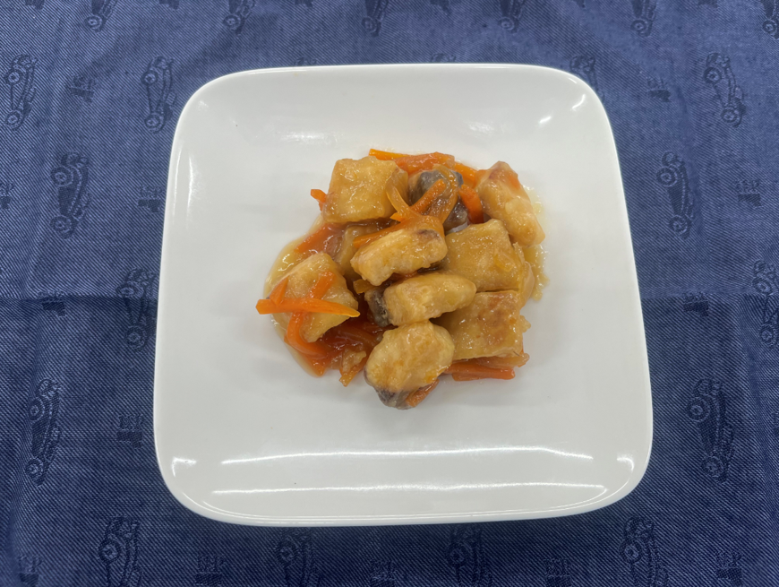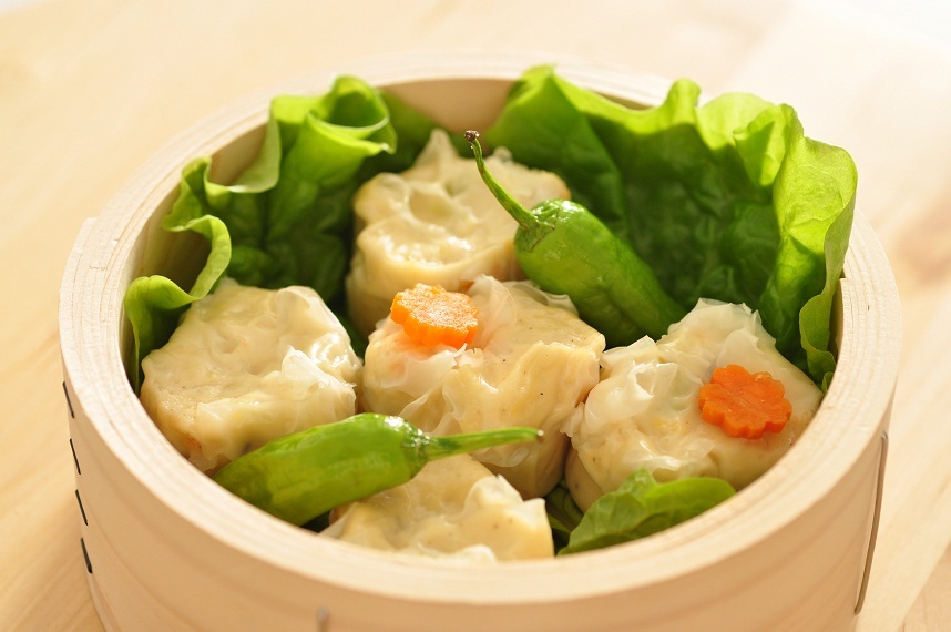 大豆の旨みたっぷりのしぼり豆腐とお魚のすり身でふんわりと仕上げました。彩り野菜が華やかなしゅうまいです。